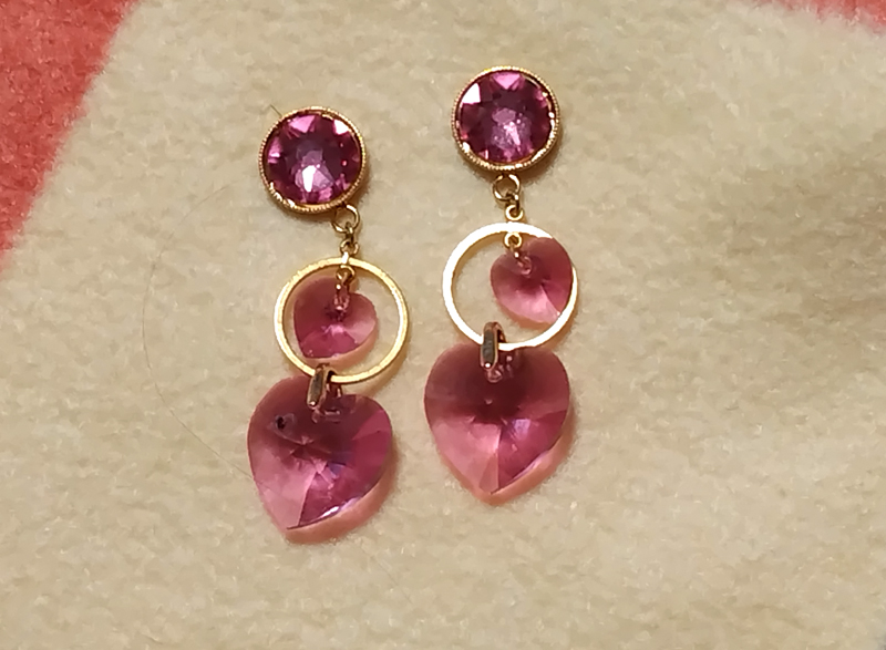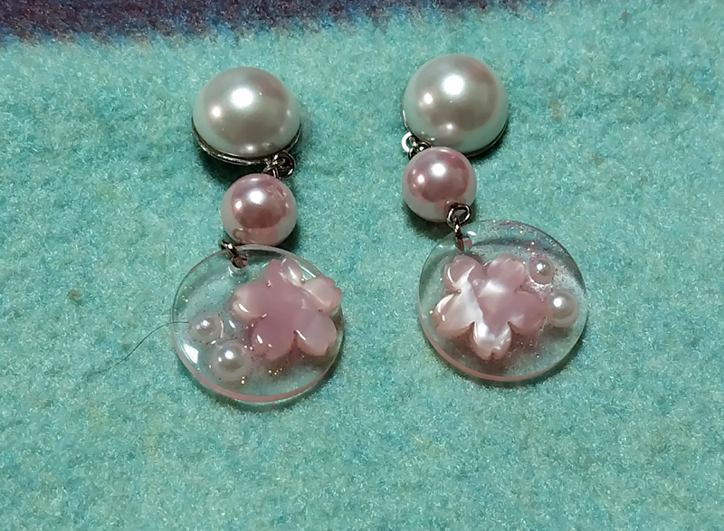 そこで考えたのが貴和製作所!スタッフさんに石をのせれる裏が平らな物があるか聞いてみたら、ミール皿というのがあり、カンがついている。これに色々ぶら下げたら可愛い貼るピアスが作れる!そして、持ってるイヤリングを改造することもてできる!ということでヤットコやニッパーなどを買って現在ハマっています。